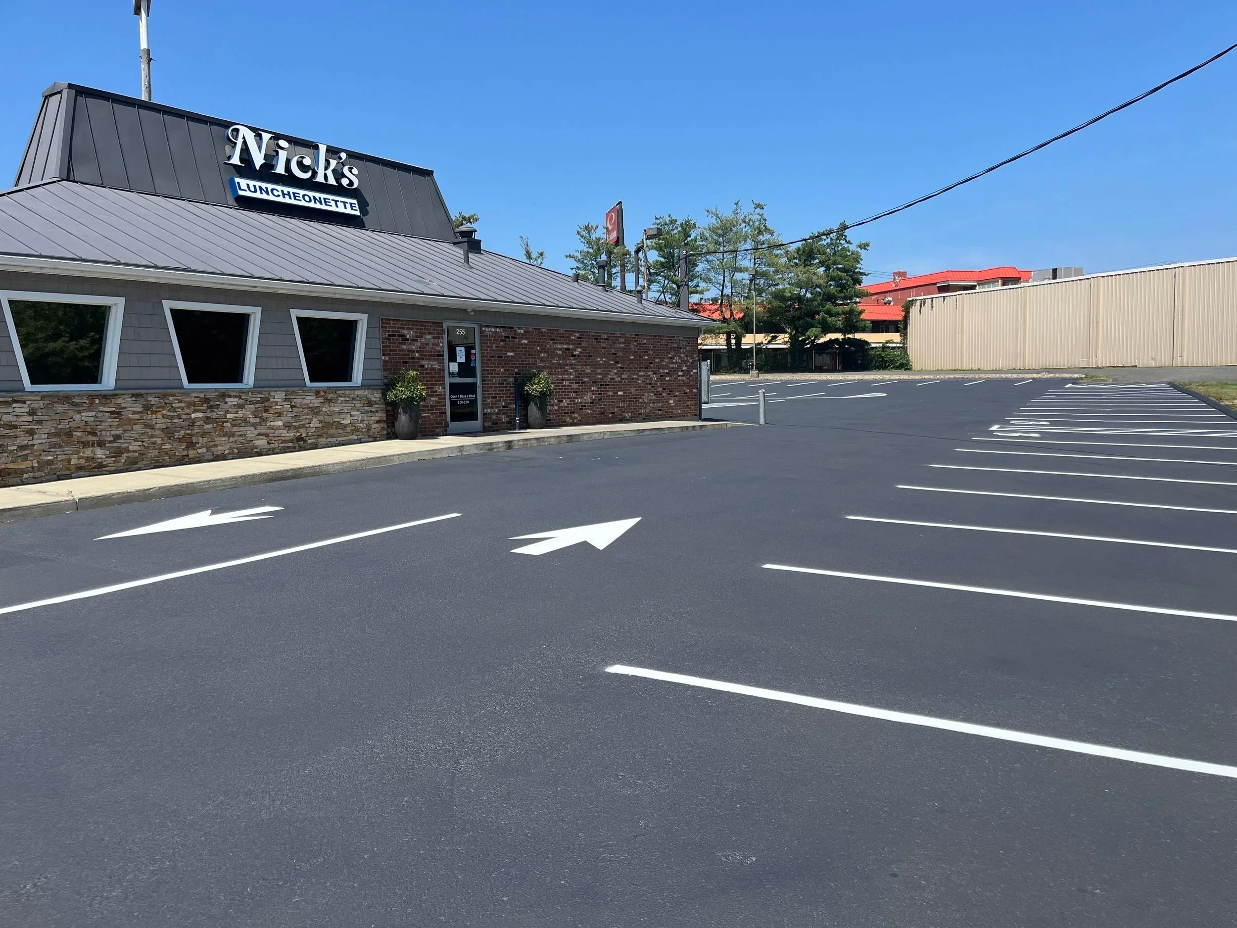 We provide professional line striping for commercial parking lots, apartment complexes, office buildings, and private properties. Fresh striping keeps traffic moving safely and ensures parking spaces, fire lanes, and directional arrows are clearly marked.